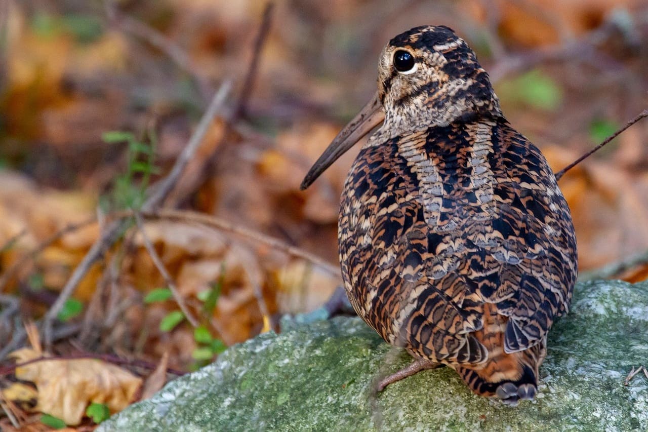 Die Waldschnepfe (Scolopax rusticola) gehört zur Familie der Schnepfenvögel (Scolopacidae) und ist damit ein Watvogel, der entgegen der Gewohnheiten seiner Familie nicht an Gewässern, sondern im Wald lebt. Sie ist etwa so gross wie eine Haustaube, mit einer Körperlänge von 33 bis 38 Zentimetern und einem Gewicht von 250 bis 420 Gramm. Ihr Gefieder ist ein Meisterwerk der Tarnung: ein komplexes Muster aus Braun-, Schwarz-, Grau- und Beigetönen, das die Waldschnepfe am Waldboden praktisch unsichtbar macht. Der lange, gerade Schnabel (6 bis 8 Zentimeter) ist ihr wichtigstes Werkzeug: Mit ihm stochert sie im weichen, feuchten Waldboden nach Regenwürmern, die bis zu 90 Prozent ihrer Nahrung ausmachen.