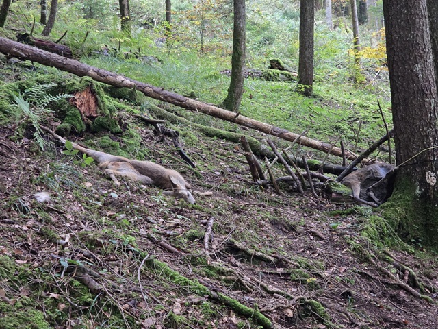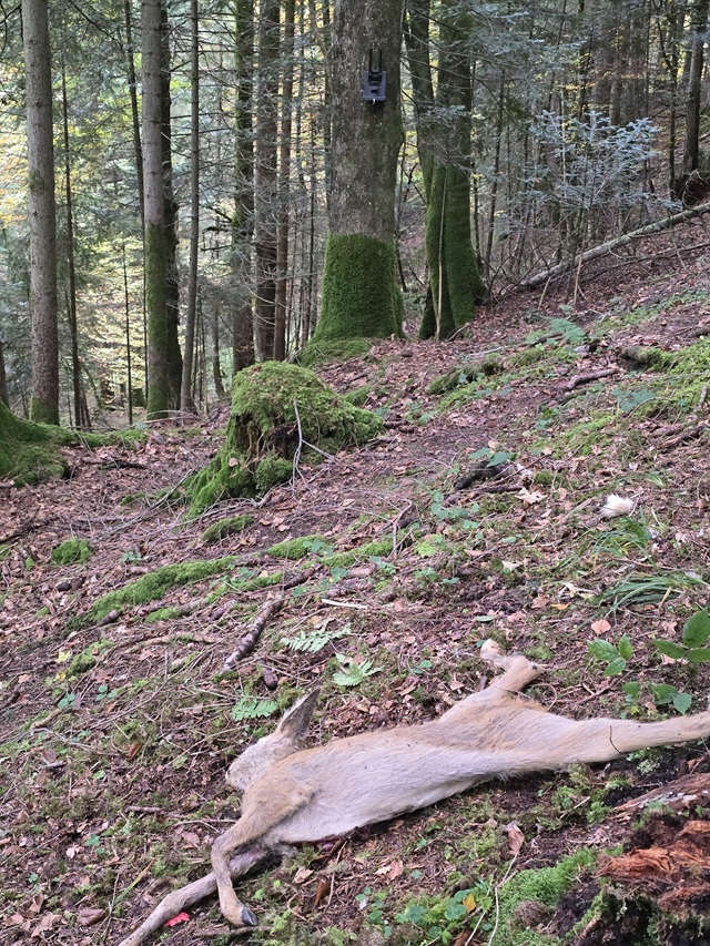 Un cerf en état de décomposition avancée et un chevreuil fraîchement éviscéré avaient été délibérément placés dans la forêt devant un piège photographique installé par le canton de Schwyz.