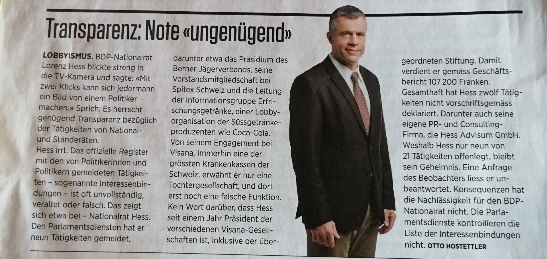 Der Mitte-Politiker Lorenz Hess setzt sich auch dafür ein, über die unsinnige Fuchsjagd den einheimischen Pelzmarkt zu stärken. Diese Tierquälerei in der Schweiz fest zu verankern. Er haut den Füchsen ja am liebsten selbst grundlos auf den Kopf. «Tiere jagen bedeutet Tiere respektieren» oder «Ein bisschen, was geht immer», ist das Motto des Hobby-Jägers. Die Weltwoche titelte damals: Militanter BDP-Nationalrat Lorenz Hess auf psychopathischer Fuchsjagd ohne Gesetzesauftrag.