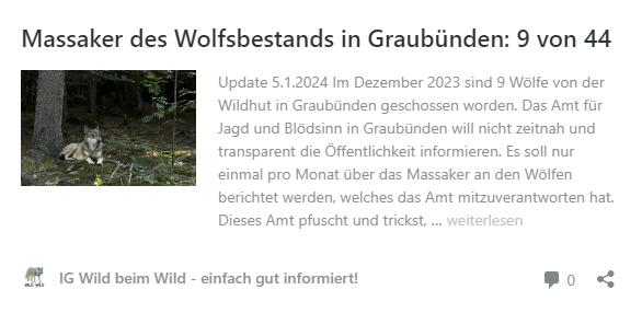 Mitmach-Aktion: Fordert bei Eurer Gemeinde aufgrund der katastrophalen Politik von Bundesrat Albert Rösti (SVP) ein Erlassgesuch für die Bundes- und Kantonssteuern aufgrund des neulich bewilligten Abschusses von Wölfen in der Schweiz. Den Musterbrief könnt ihr hier downloaden: https://wildbeimwild.com/ein-appell-fuer-eine-veraenderung-in-der-schweiz/