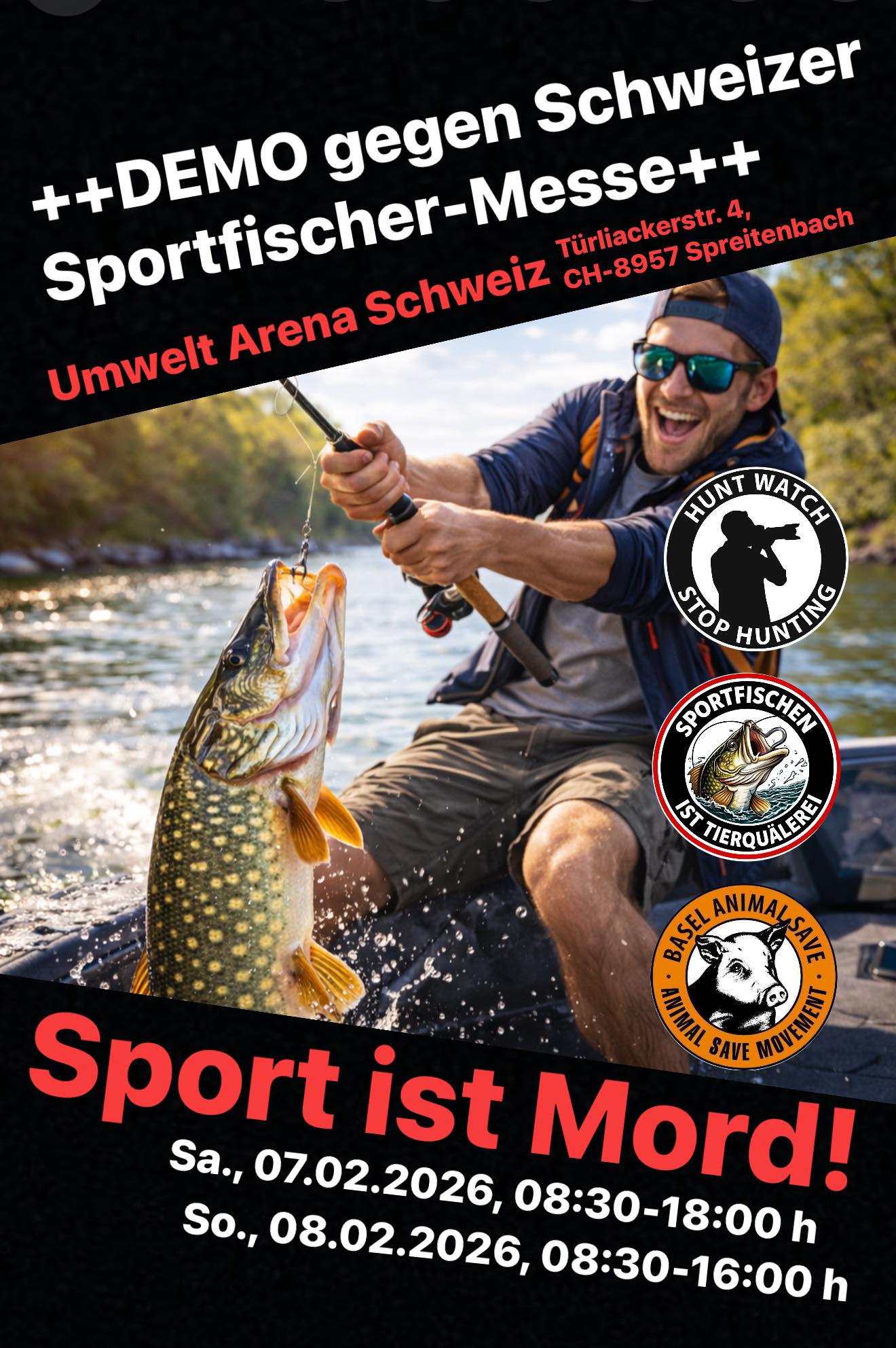De aanleiding was een petitie tegen " dierenmishandeling in de Umwelt Arena Spreitenbach ", die niet alleen gericht was tegen de hobbyjachtbeurs , maar ook expliciet tegen de bijbehorende vakbeurzen zoals sportvissen en terrariums.