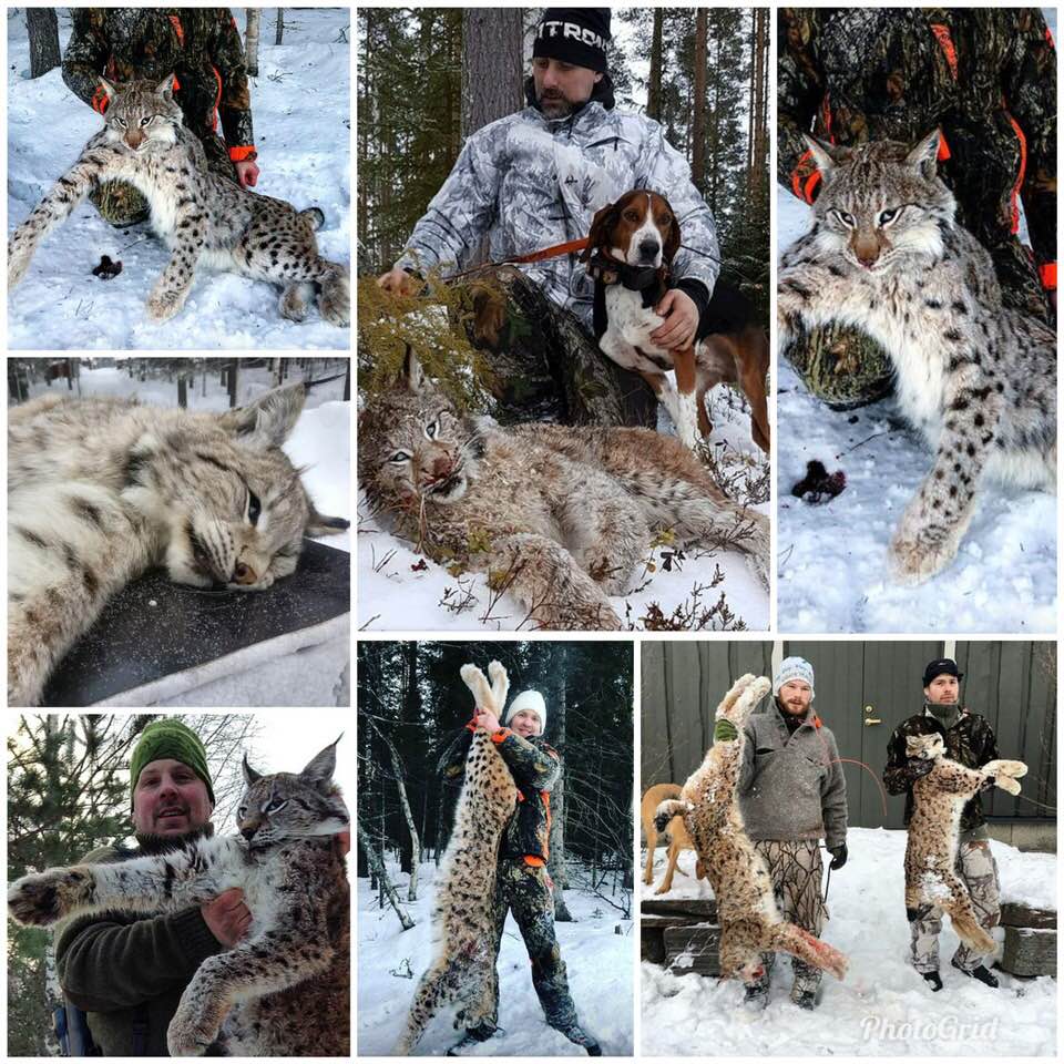 Die geschützten Luchse werden mit speziell misszüchteten und aus dem Ausland importierten Hunden bejagt. Sogar auf den Bäumen werden die Pinselohren auf ihrer Flucht vor dem Gesindel abgeschossen. Mutter- und Jungtiere werden schonungslos eliminiert, wie es sich für einen Hobby-Jäger gehört. Als Begründung wird unter anderem angegeben, dass die Luchse Rentiere erbeuten.